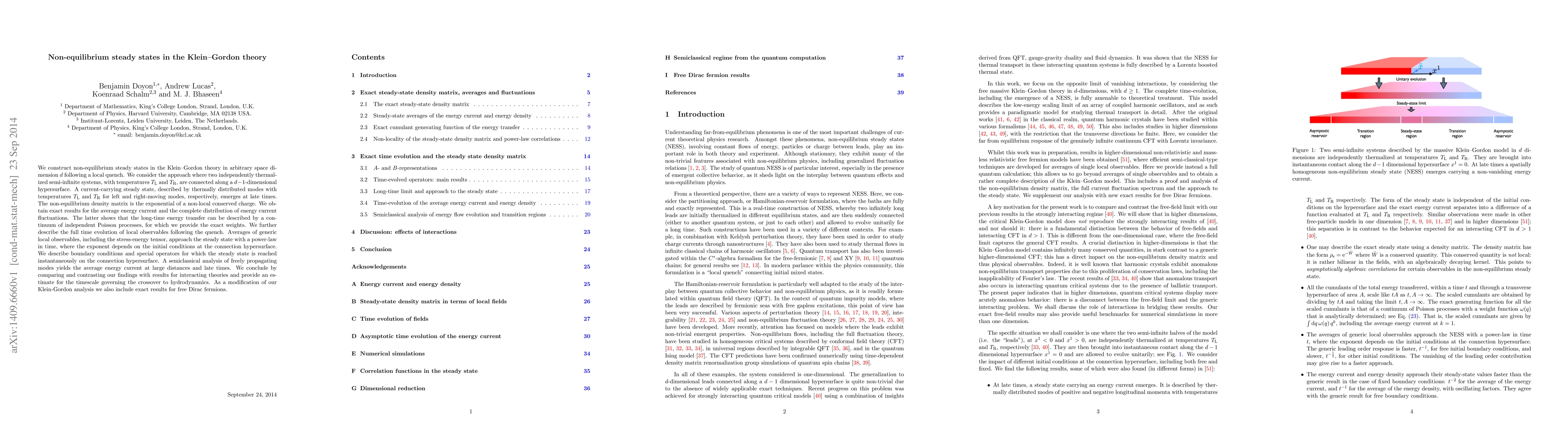 Researchers created non-equilibrium steady states in the Klein-Gordon theory after a local quench, showing that energy transfer can be described as a continuum of independent Poisson processes.
