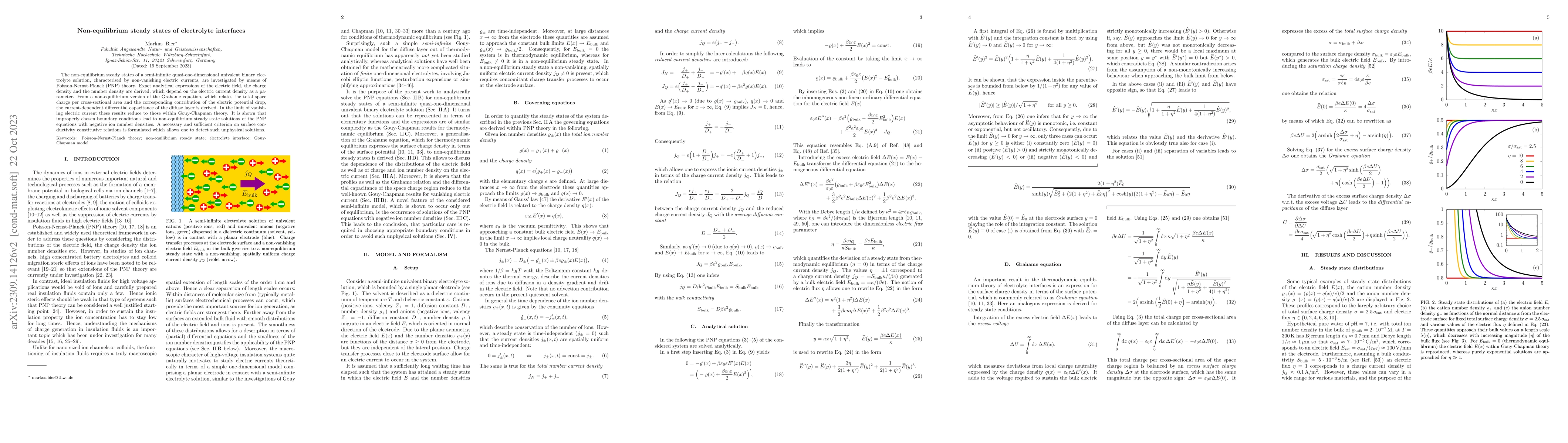 This paper investigates the non-equilibrium steady states of electrolyte interfaces using Poisson-Nernst-Planck theory, deriving exact analytical expressions for electric field and charge density. It also formulates a criterion to detect unphysical solutions arising from improper boundary conditions.