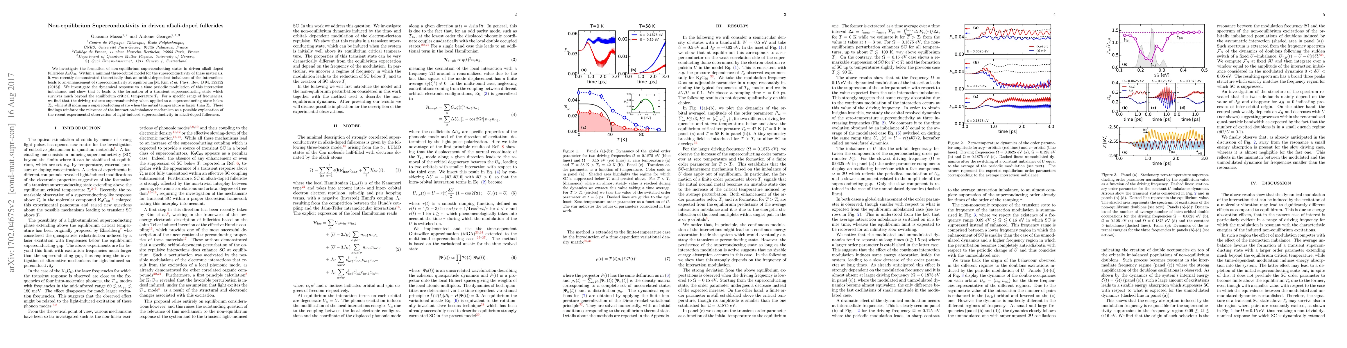This paper explores the emergence of transient non-equilibrium superconducting states in driven alkali-doped fullerides, demonstrating that periodic modulation of interaction imbalances can induce superconductivity even above the equilibrium critical temperature $T_c$. The findings support the interaction-imbalance mechanism for light-induced superconductivity in these materials.