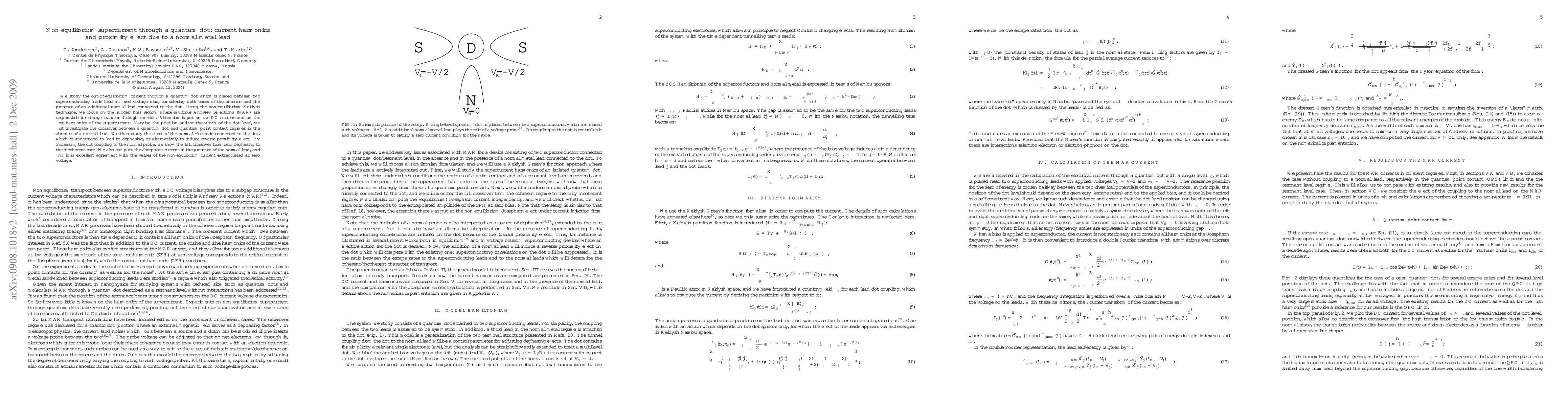 This research uses a quantum dot model between two superconducting leads to study subgap current and multiple Andreev reflections. It explores the effects of a normal metal probe on supercurrent and dephasing, finding agreement between computed and extrapolated current values.