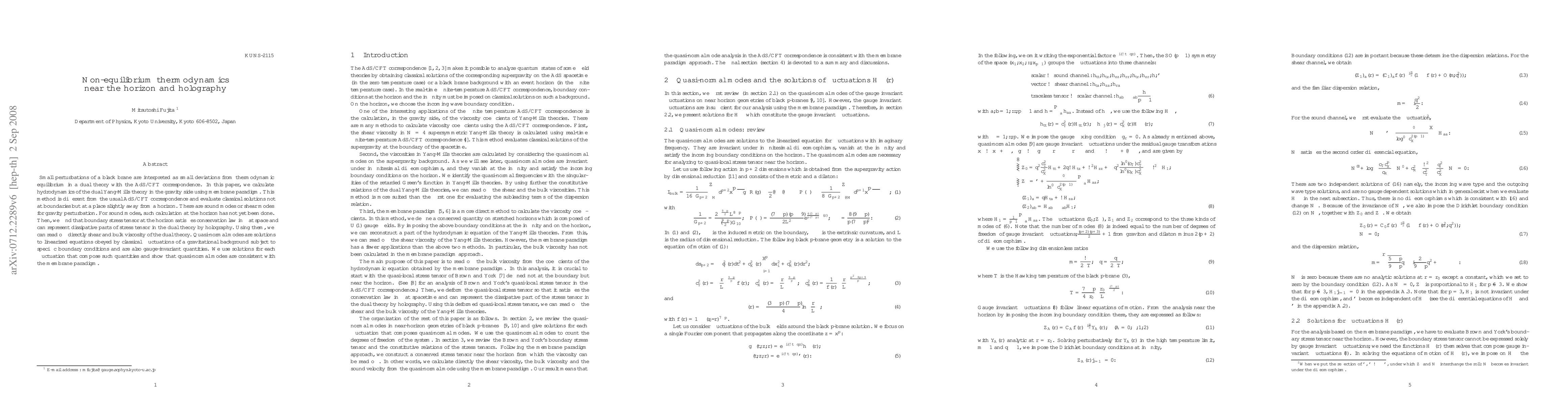 This research explores how small disturbances near a black hole horizon relate to the behavior of a dual quantum theory, using a method that evaluates gravitational solutions slightly away from the horizon. It demonstrates that properties like viscosity in the dual theory can be directly obtained from these gravitational perturbations, confirming the consistency of the membrane paradigm with quasinormal mode analysis.