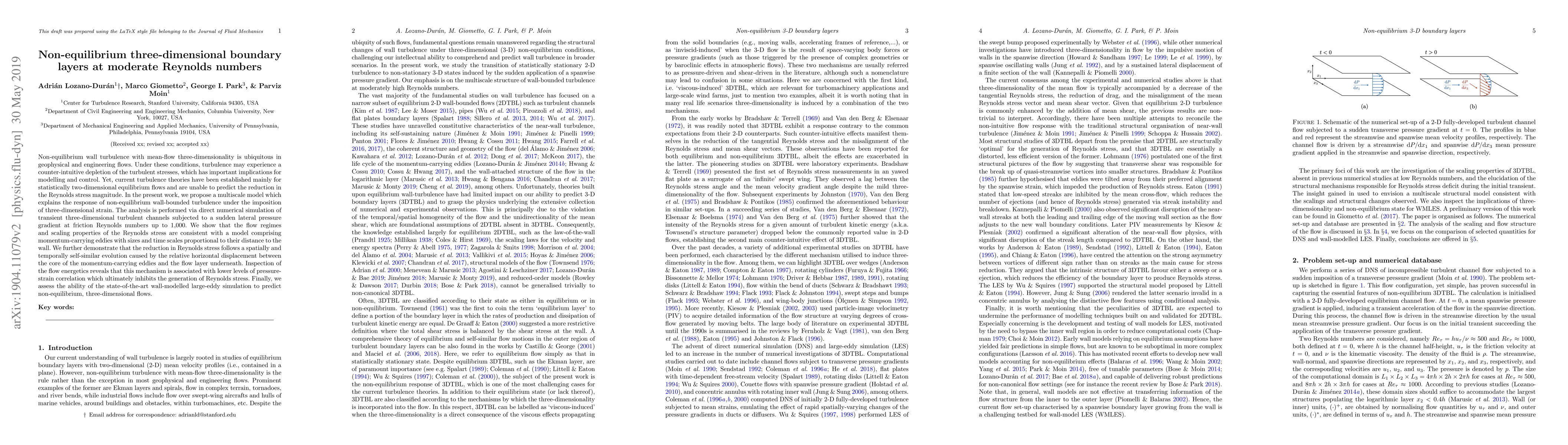 Non-equilibrium wall turbulence with mean-flow three-dimensionality is ubiquitous in geophysical and engineering flows. Under these conditions, turbulence may experience a counter-intuitive depletion of the turbulent stresses, which has important implications for modelling and control. Yet, current turbulence theories have been established mainly for statistically two-dimensional equilibrium flows and are unable to predict the reduction in the Reynolds stress magnitude. In the present work, we propose a multiscale model which explains the response of non-equilibrium wall-bounded turbulence under the imposition of three-dimensional strain. The analysis is performed via direct numerical simulation of transient three-dimensional turbulent channels subjected to a sudden lateral pressure gradient at friction Reynolds numbers up to 1,000. We show that the flow regimes and scaling properties of the Reynolds stress are consistent with a model comprising momentum-carrying eddies with sizes and time scales proportional to their distance to the wall. We further demonstrate that the reduction in Reynolds stress follows a spatially and temporally self-similar evolution caused by the relative horizontal displacement between the core of the momentum-carrying eddies and the flow layer underneath. Inspection of the flow energetics reveals that this mechanism is associated with lower levels of pressure-strain correlation which ultimately inhibits the generation of Reynolds stress. Finally, we assess the ability of the state-of-the-art wall-modelled large-eddy simulation to predict non-equilibrium, three-dimensional flows.