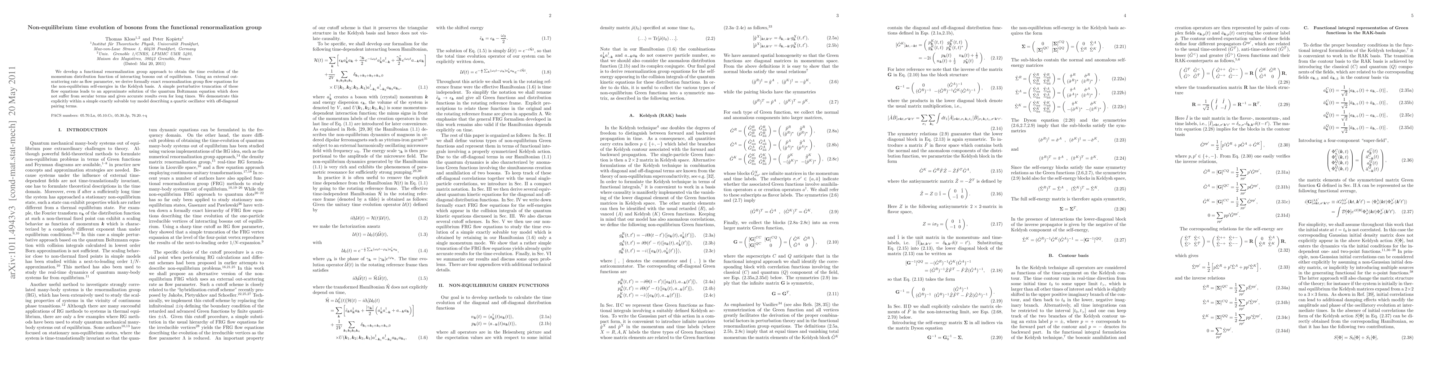 This paper develops a functional renormalization group method to study the time evolution of non-equilibrium momentum distribution functions of interacting bosons. It provides exact flow equations for non-equilibrium self-energies and demonstrates an approximate solution of the quantum Boltzmann equation, showing accurate results for long times through a perturbative truncation, illustrated in a simple toy model.