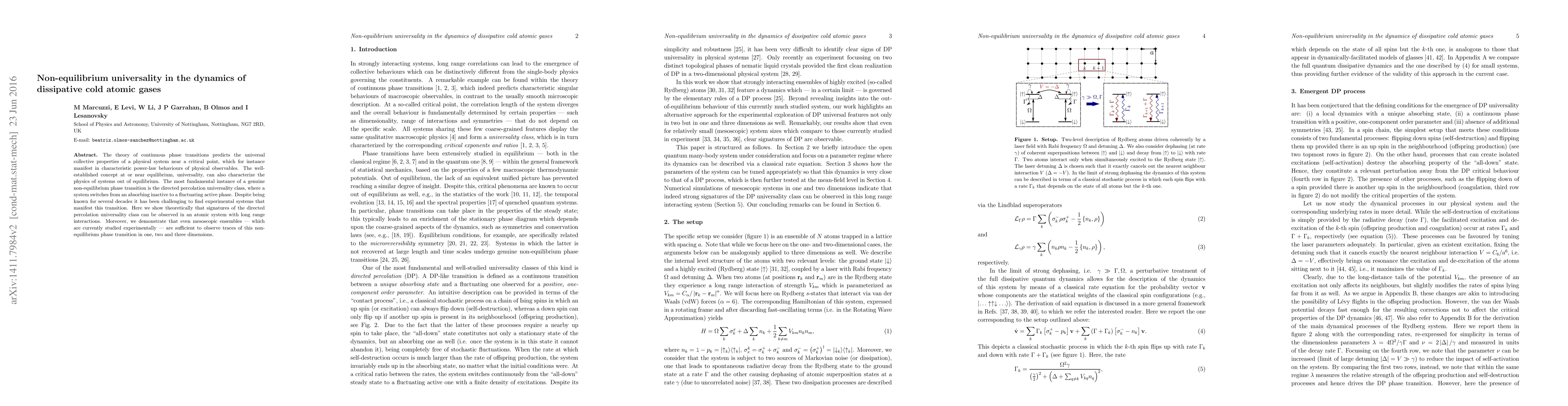 This paper theoretically demonstrates that non-equilibrium universality, specifically the directed percolation universality class, can be observed in cold atomic gases with long-range interactions, extending the concept of universality beyond equilibrium systems. It shows that mesoscopic ensembles can exhibit signatures of this non-equilibrium phase transition in one, two, and three dimensions.