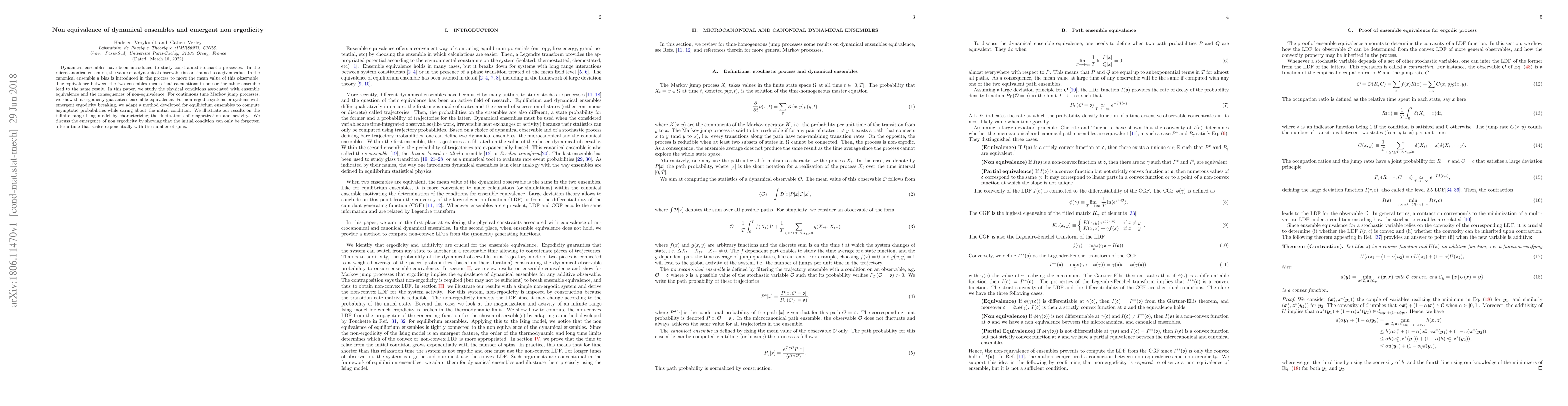 This paper investigates the conditions under which dynamical ensembles remain equivalent and explores the implications of non-equivalence, particularly in non-ergodic systems. It demonstrates that ergodicity ensures ensemble equivalence, while non-ergodic systems exhibit emergent non-ergodicity, illustrated through the infinite range Ising model.
