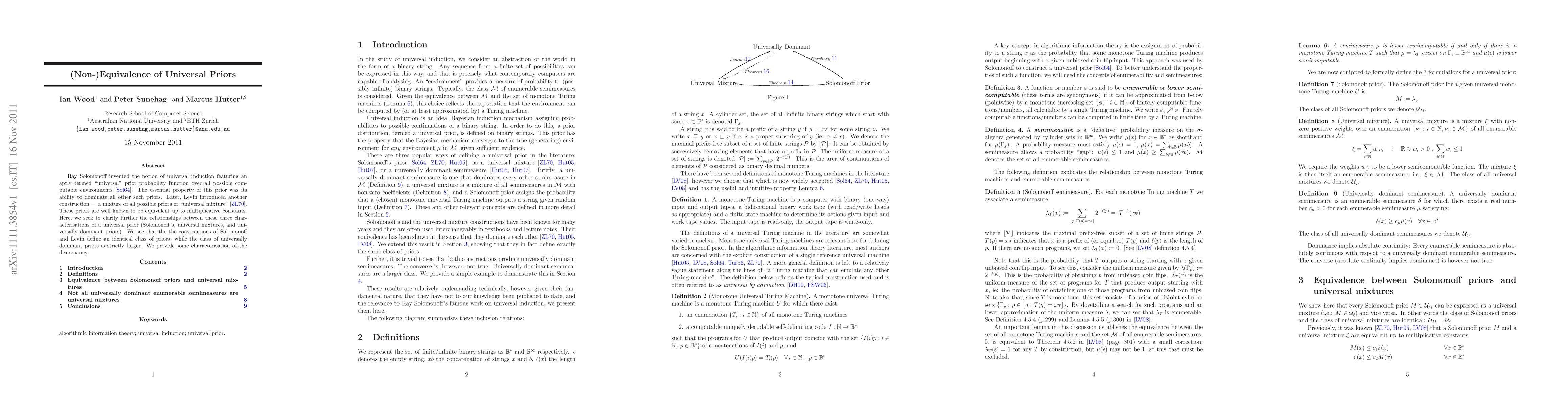 Ray Solomonoff invented the notion of universal induction featuring an aptly termed "universal" prior probability function over all possible computable environments. The essential property of this prior was its ability to dominate all other such priors. Later, Levin introduced another construction --- a mixture of all possible priors or `universal mixture'. These priors are well known to be equivalent up to multiplicative constants. Here, we seek to clarify further the relationships between these three characterisations of a universal prior (Solomonoff's, universal mixtures, and universally dominant priors). We see that the the constructions of Solomonoff and Levin define an identical class of priors, while the class of universally dominant priors is strictly larger. We provide some characterisation of the discrepancy.