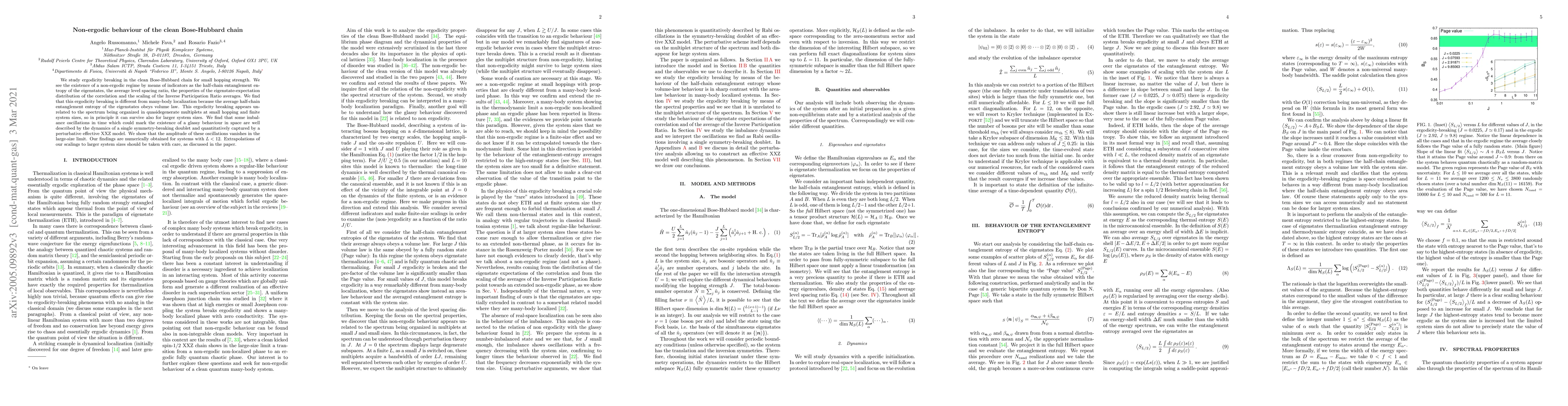 Researchers study ergodicity breaking in clean Bose-Hubbard chains with small hopping strength, finding a non-ergodic regime that survives for larger system sizes and is distinct from many-body localization.