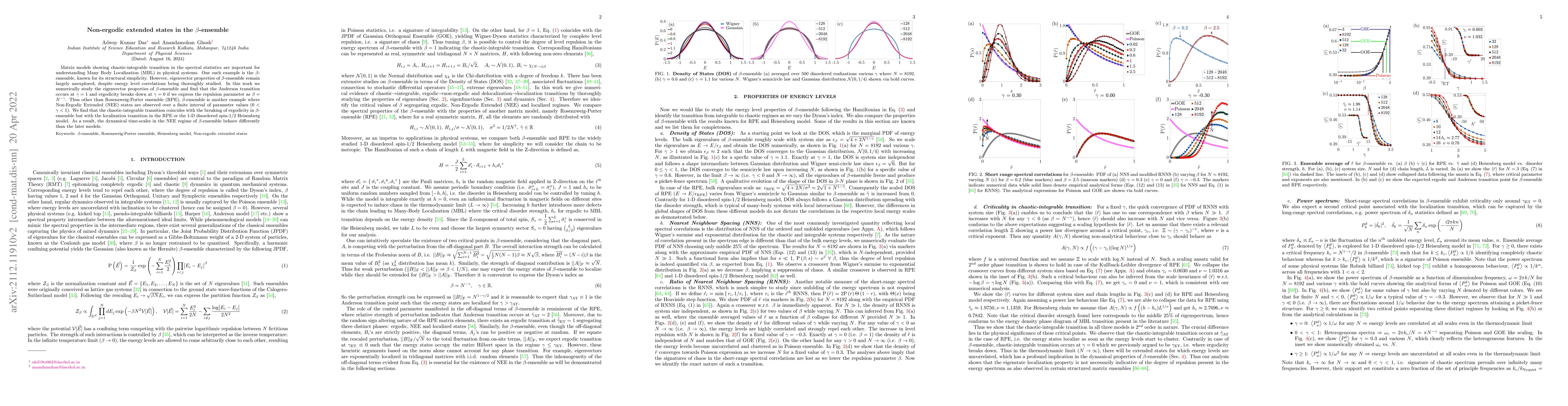 This research numerically investigates eigenvector properties in the $\beta$-ensemble, revealing the emergence of Non-Ergodic Extended (NEE) states over a finite parameter range, demonstrating a chaotic-integrable transition linked to ergodicity breakdown. Unlike the Rosenzweig-Porter ensemble, the $\beta$-ensemble shows distinct dynamical time-scales during the NEE regime.