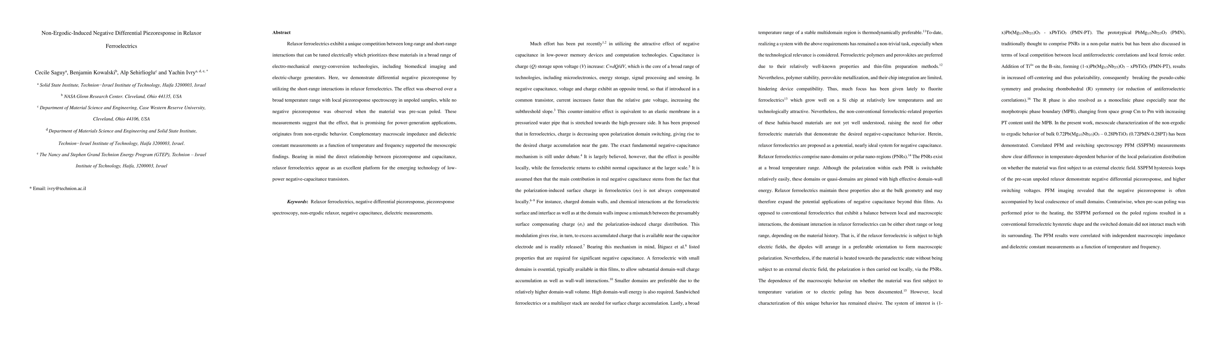 This study reveals negative differential piezoresponse in relaxor ferroelectrics, a phenomenon driven by non-ergodic behavior rather than traditional poled states. The findings indicate potential for low-power technology applications, such as negative-capacitance transistors, leveraging the material's unique electro-mechanical properties.
