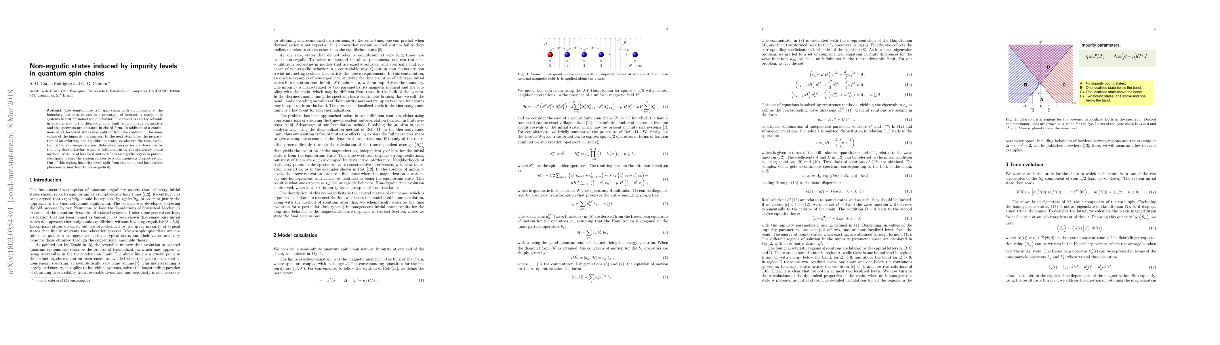 Researchers studied a quantum spin chain with an impurity, finding that certain levels of impurity can lead to non-ergodic behavior, where the system does not relax to a homogeneous state.