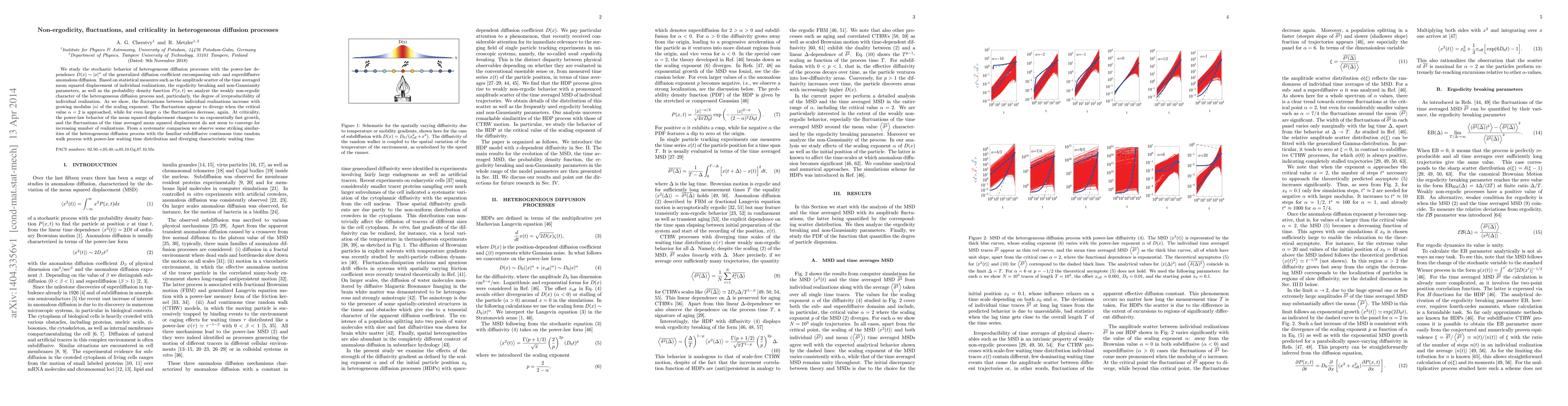 This paper investigates the stochastic behavior of heterogeneous diffusion processes characterized by a power-law diffusion coefficient, focusing on ergodicity breaking and non-Gaussian fluctuations. It finds that fluctuations increase with the modulus of the scaling exponent, diverge near the critical value of $\alpha=2$, and decrease for larger $\alpha$.