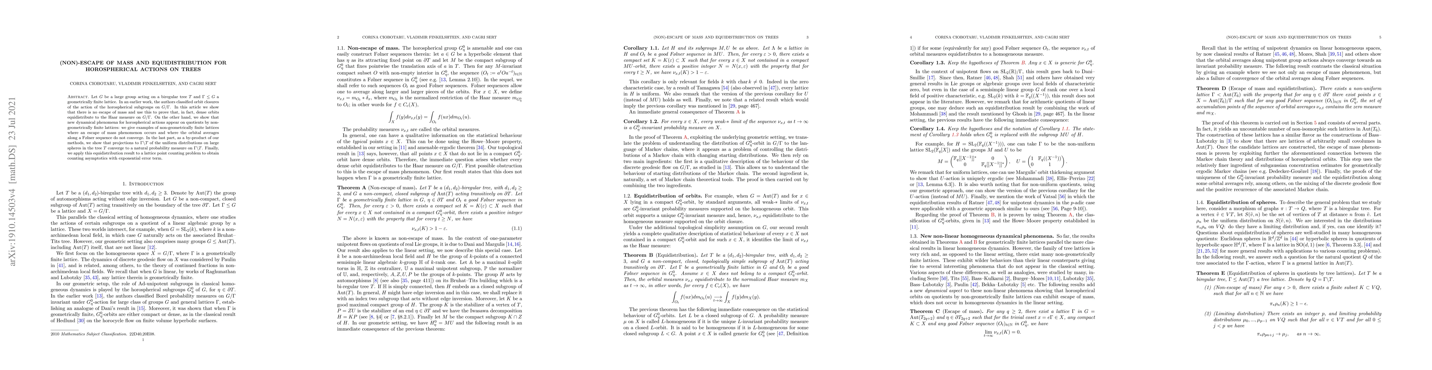 This paper investigates the dynamics of horospherical actions on biregular trees, proving the absence of mass escape and equidistribution of dense orbits. It also identifies new dynamical phenomena in non-geometrically finite lattices, including mass escape and non-convergence of orbital averages.
