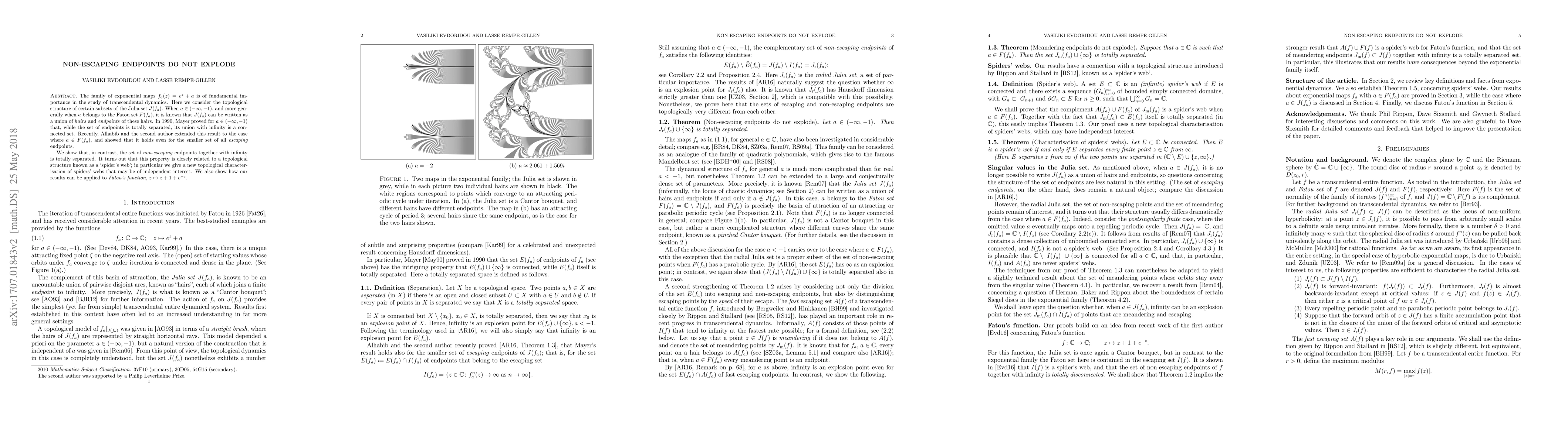 The paper establishes a contrast between escaping and non-escaping endpoints in exponential maps, providing a new characterization of spiders' webs, and extends previous results to a broader class of parameters.