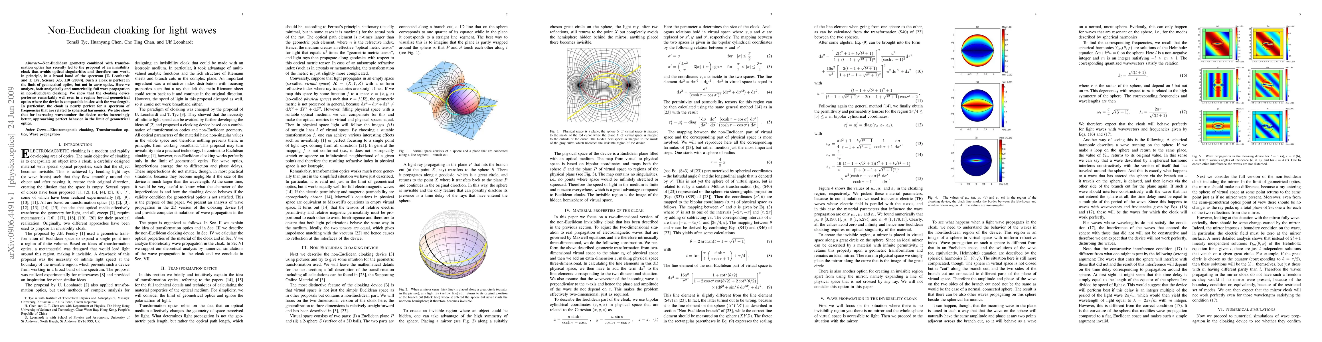 The paper presents a detailed analysis of wave propagation in non-Euclidean cloaking devices, including analytical and numerical methods to understand their performance in both geometrical and wave optics regimes.