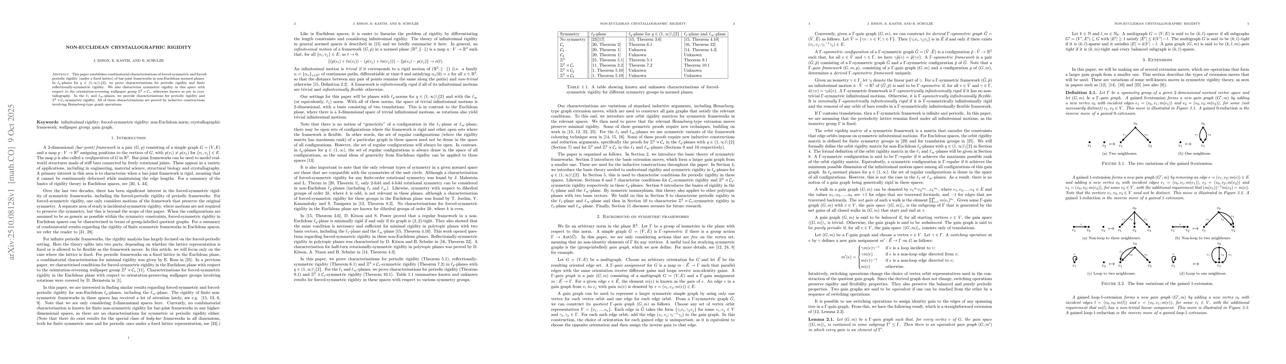 The research employs a combination of graph theory, group theory, and combinatorial optimization to analyze the rigidity of crystallographic frameworks under non-Euclidean norms. It uses orbit rigidity matrices and symmetry-adapted extensions to characterize periodic and symmetric rigidity properties.