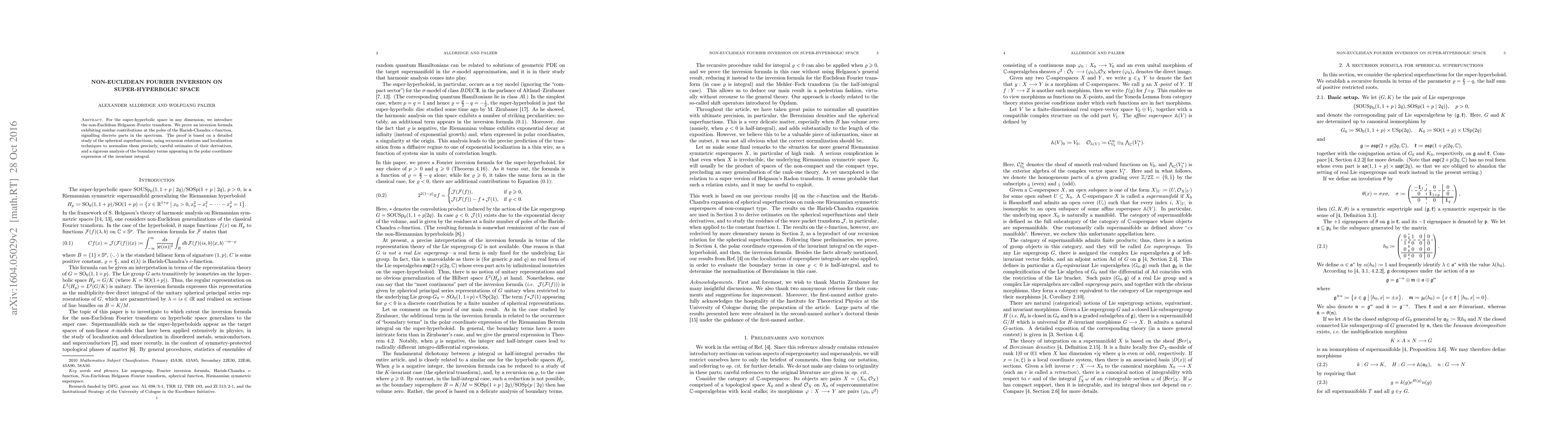 This research introduces the non-Euclidean Helgason--Fourier transform for super-hyperbolic space in any dimension, proving an inversion formula with residue contributions at spectrum poles. The proof relies on precise spherical superfunction normalization, derivative estimates, and boundary term analysis.