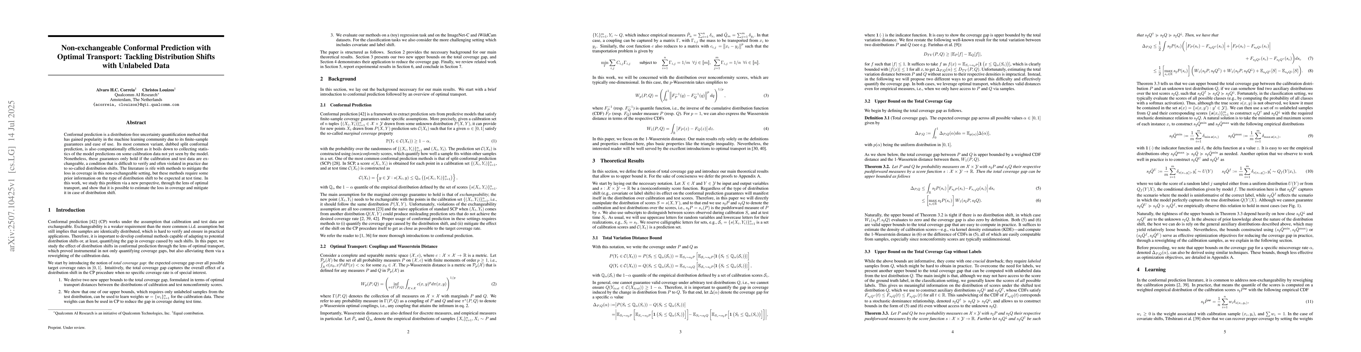 Conformal prediction is a distribution-free uncertainty quantification method that has gained popularity in the machine learning community due to its finite-sample guarantees and ease of use. Its most common variant, dubbed split conformal prediction, is also computationally efficient as it boils down to collecting statistics of the model predictions on some calibration data not yet seen by the model. Nonetheless, these guarantees only hold if the calibration and test data are exchangeable, a condition that is difficult to verify and often violated in practice due to so-called distribution shifts. The literature is rife with methods to mitigate the loss in coverage in this non-exchangeable setting, but these methods require some prior information on the type of distribution shift to be expected at test time. In this work, we study this problem via a new perspective, through the lens of optimal transport, and show that it is possible to estimate the loss in coverage and mitigate it in case of distribution shift.