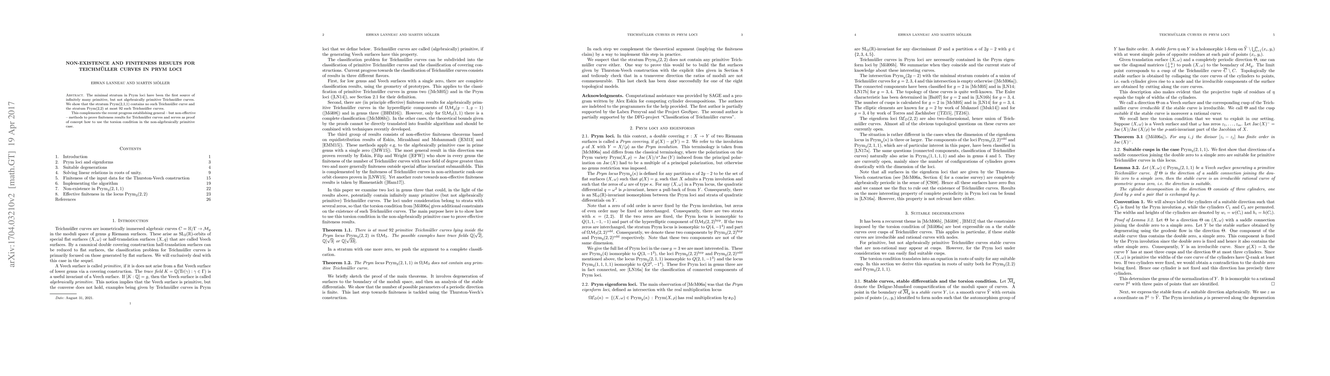 The paper demonstrates that the stratum Prym(2,1,1) contains no Teichmueller curves and limits the number of such curves in Prym(2,2) to at most 92. This provides specific finiteness results complementing recent general methods for proving the finiteness of Teichmueller curves.