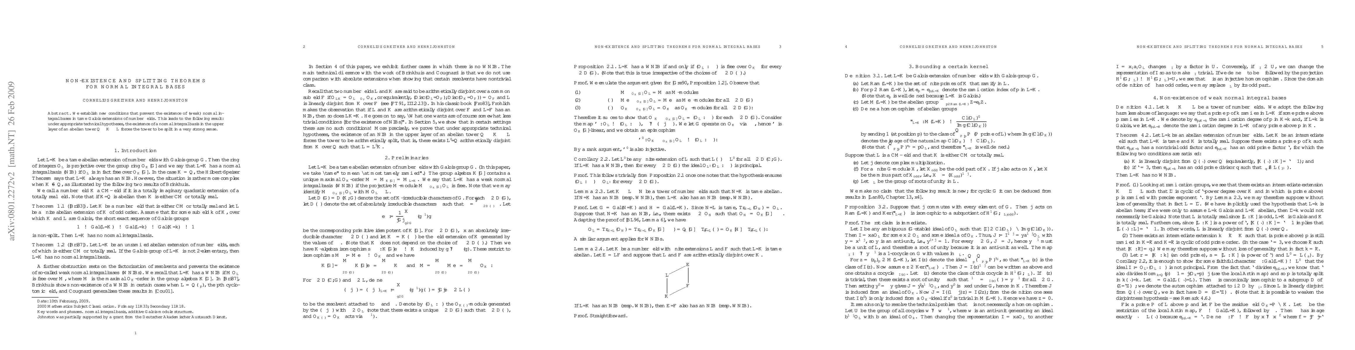 We establish new conditions that prevent the existence of (weak) normal integral bases in tame Galois extensions of number fields. This leads to the following result: under appropriate technical hypotheses, the existence of a normal integral basis in the upper layer of an abelian tower Q \subset K \subset L forces the tower to be split in a very strong sense.