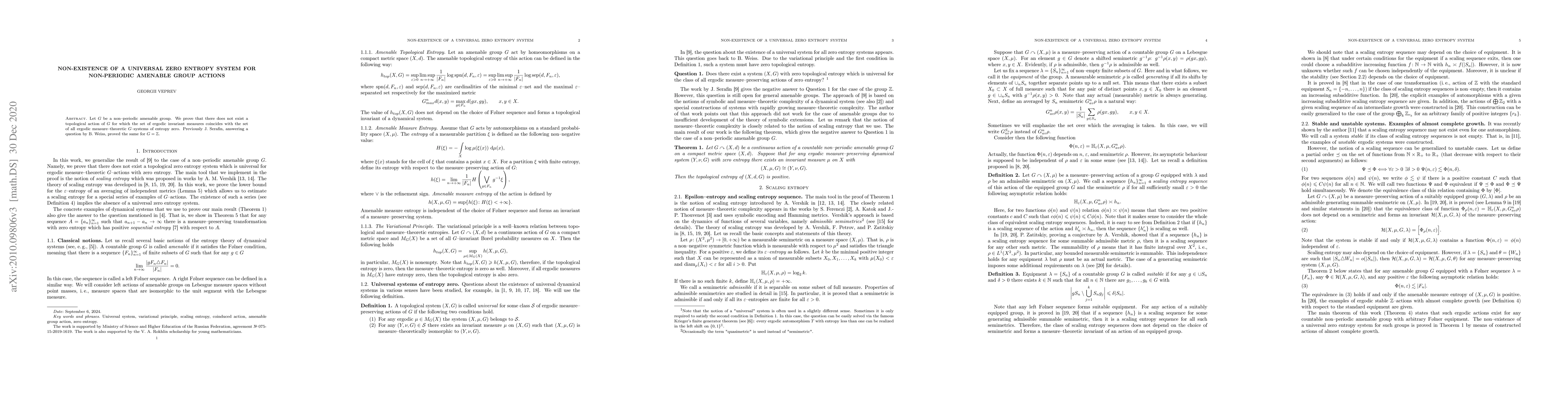 Let $G$ be a non-periodic amenable group. We prove that there does not exist a topological action of $G$ for which the set of ergodic invariant measures coincides with the set of all ergodic measure-theoretic $G$-systems of entropy zero. Previously J. Serafin, answering a question by B. Weiss, proved the same for $G = \mathbb{Z}$.
