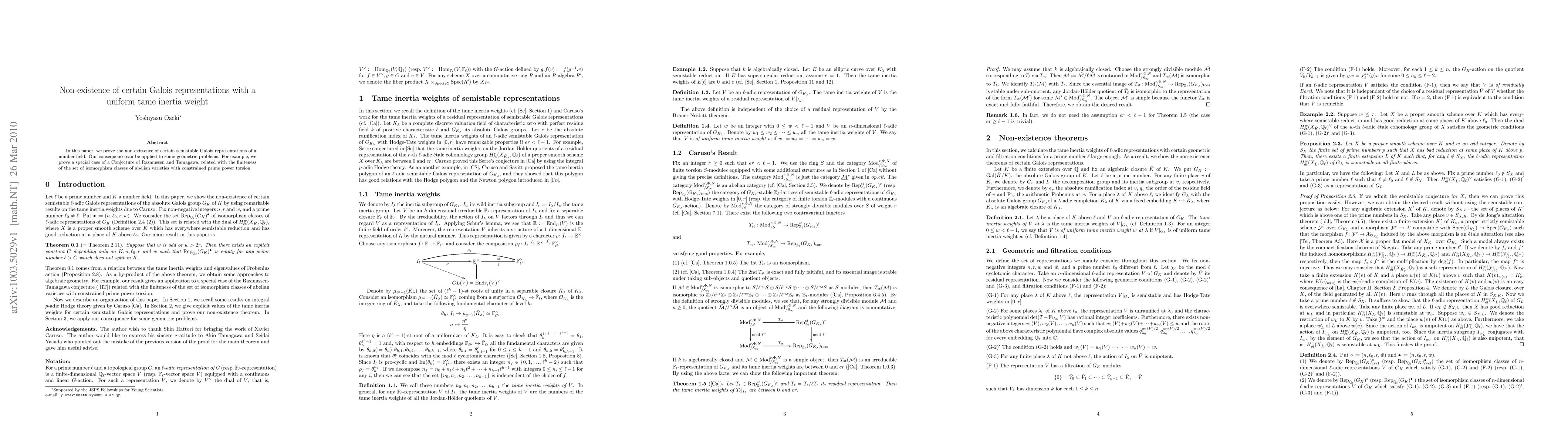 This paper demonstrates the non-existence of certain semistable Galois representations of a number field, which has implications for geometric problems, including proving a special case of a Conjecture of Rasmussen and Tamagawa regarding abelian varieties with constrained prime power torsion.