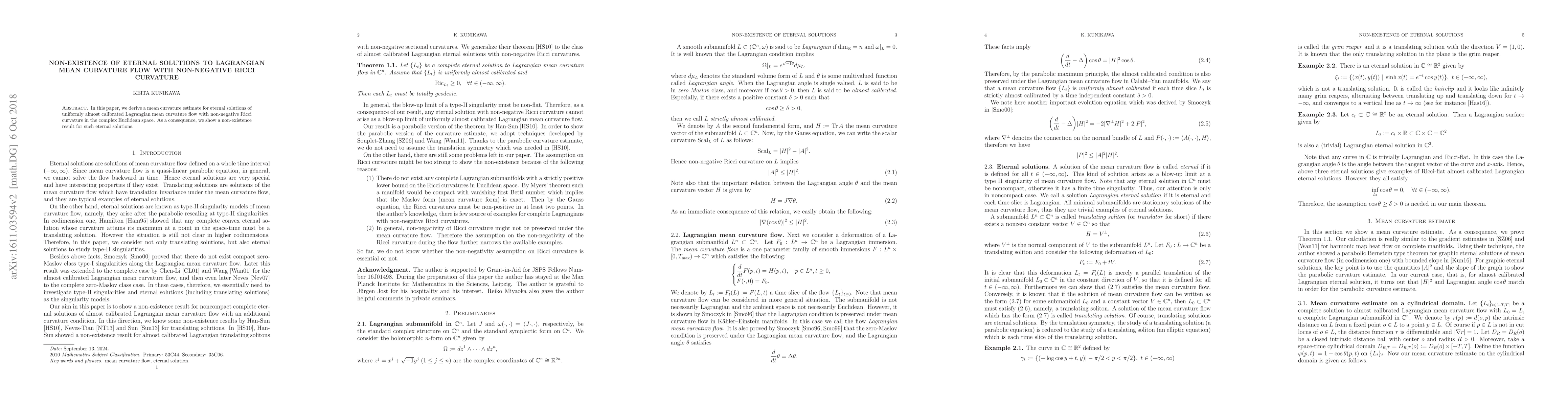 This paper establishes a mean curvature estimate for eternal solutions of almost-calibrated Lagrangian mean curvature flow in complex Euclidean space, leading to the non-existence of such eternal solutions with non-negative Ricci curvature.