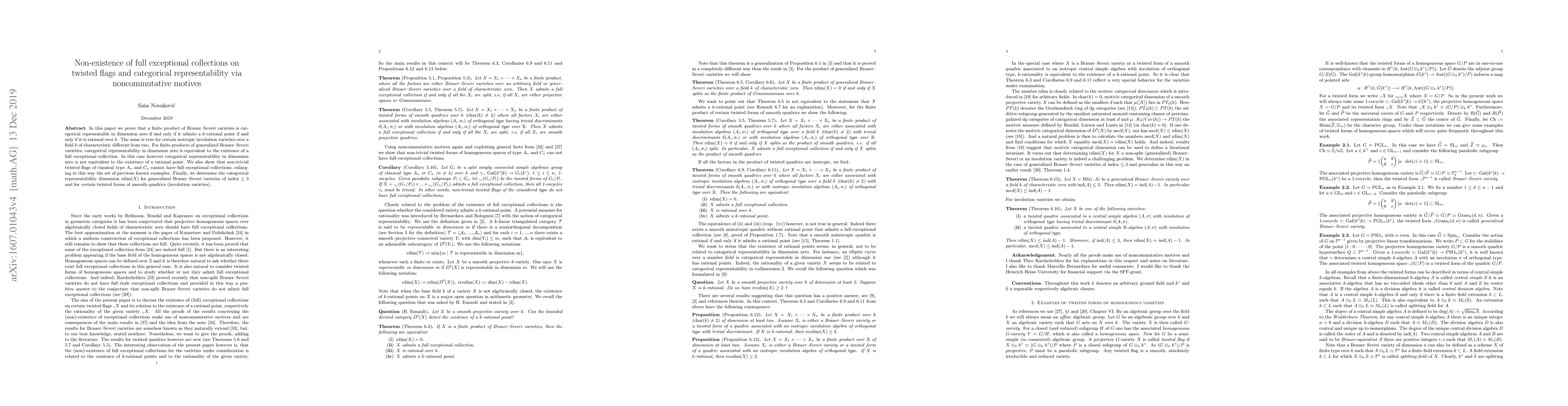 This paper demonstrates that categorical representability in dimension zero for finite products of Brauer-Severi varieties and certain isotropic involution varieties is equivalent to the presence of a $k$-rational point. It also shows that twisted flags of classical types $A_n$ and $C_n$ lack full exceptional collections, and determines the categorical representability dimension for generalized Brauer-Severi varieties and twisted forms of smooth quadrics.