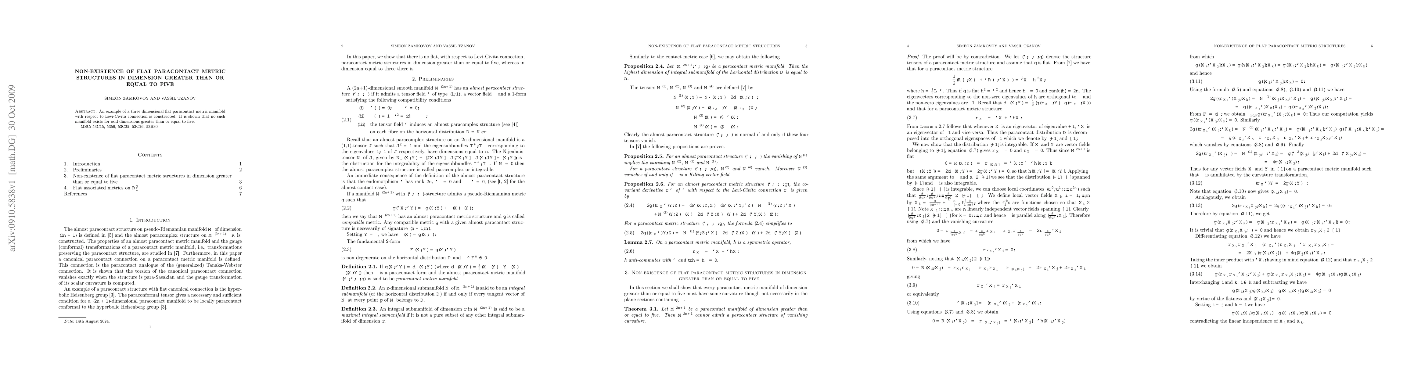 Summary: The paper constructs a three-dimensional flat paracontact metric manifold and proves that no such flat paracontact metric structures exist in odd dimensions greater than or equal to five. This result highlights the uniqueness of three-dimensional examples in this context.