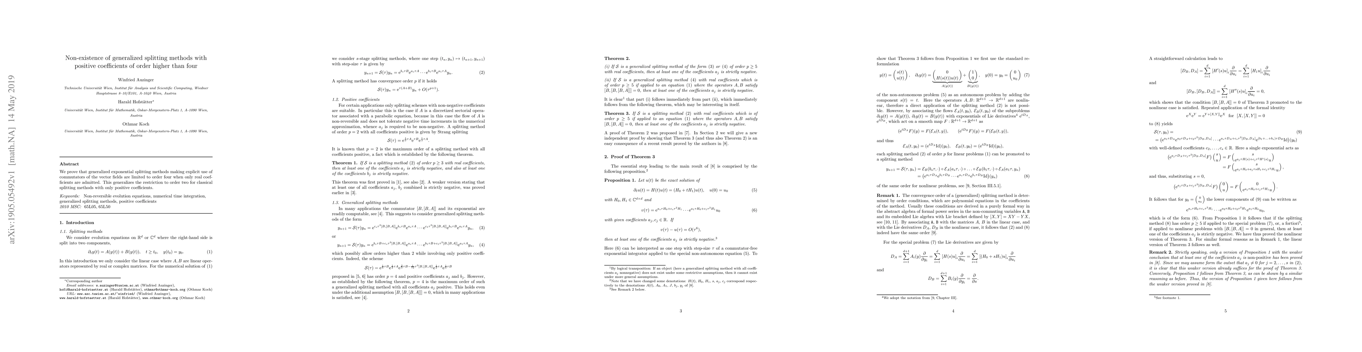We prove that generalized exponential splitting methods making explicit use of commutators of the vector fields are limited to order four when only real coefficients are admitted. This generalizes the restriction to order two for classical splitting methods with only positive coefficients.