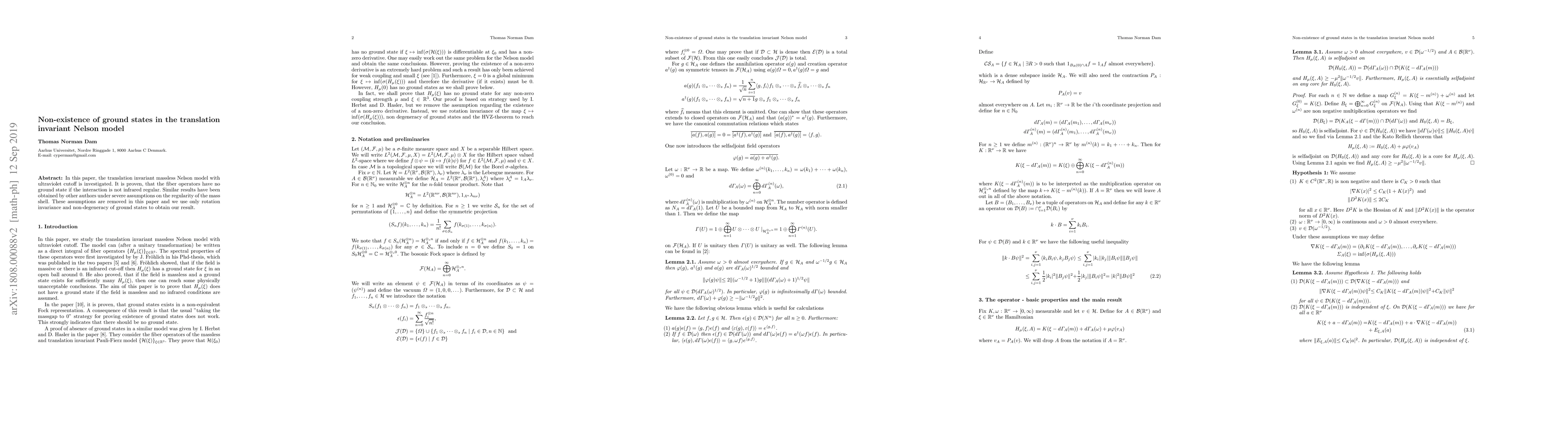 The paper establishes the non-existence of ground states in the translation invariant Nelson model without infrared cutoff, using advanced operator theory techniques.