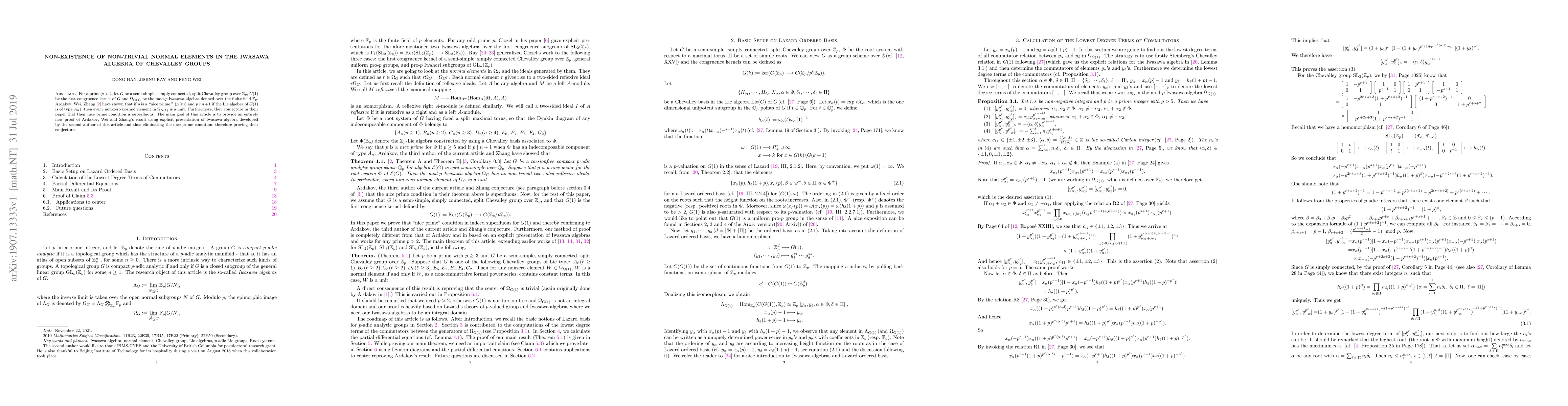 For a prime $p>2$, let $G$ be a semi-simple, simply connected, split Chevalley group over $\mathbb{Z}_p$, $G(1)$ be the first congruence kernel of $G$ and $\Omega_{G(1)}$ be the mod-$p$ Iwasawa algebra defined over the finite field $\mathbb{F}_p$. Ardakov, Wei, Zhang have shown that if $p$ is a "nice prime " ($p \geq 5$ and $p \nmid n+1$ if the Lie algebra of $G(1)$ is of type $A_n$), then every non-zero normal element in $\Omega_{G(1)}$ is a unit. Furthermore, they conjecture in their paper that their nice prime condition is superfluous. The main goal of this article is to provide an entirely new proof of Ardakov, Wei and Zhang's result using explicit presentation of Iwasawa algebra developed by the second author of this article and thus eliminating the nice prime condition, therefore proving their conjecture.