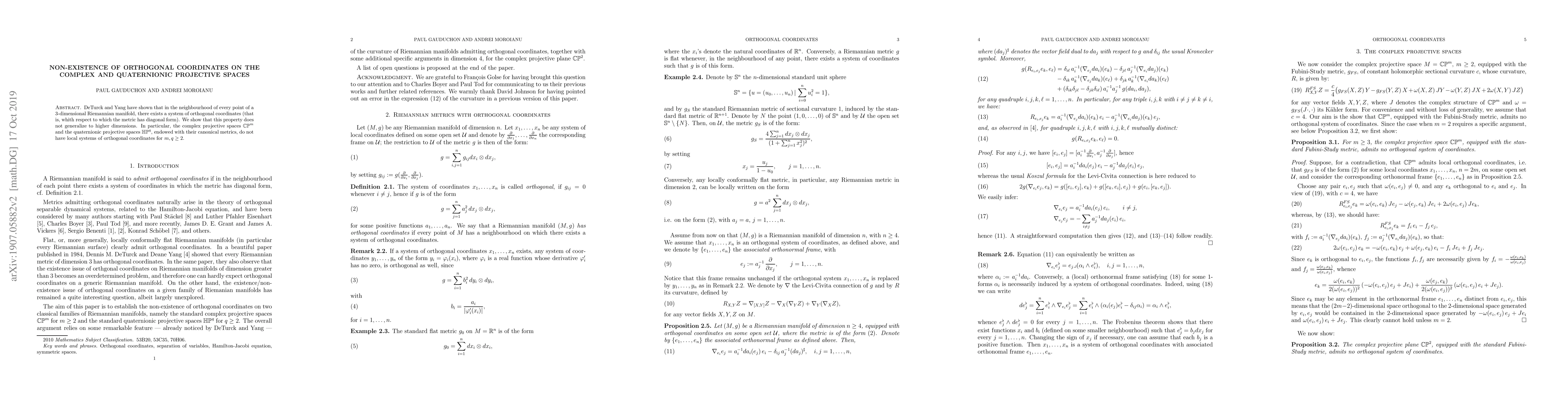 Summary: The paper demonstrates that unlike in 3-dimensional Riemannian manifolds, complex projective spaces $\mathbb{CP}^m$ and quaternionic projective spaces $\mathbb{HP}^q$ (for $m,q\ge 2$) do not possess local systems of orthogonal coordinates, despite the existence of such systems in lower dimensions.