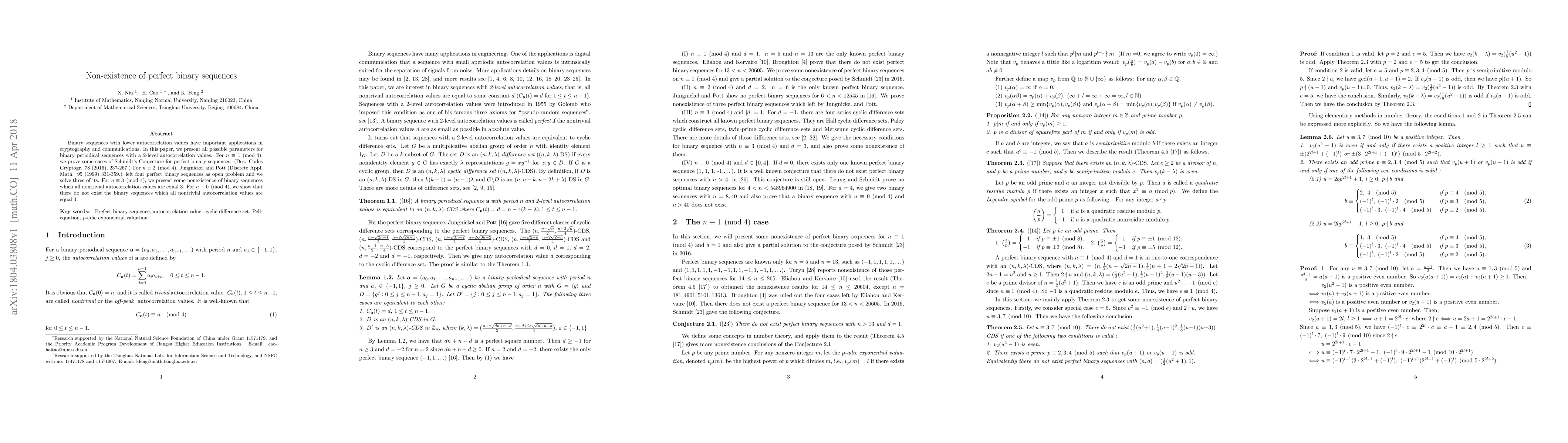 Binary sequences with lower autocorrelation values have important applications in cryptography and communications. In this paper, we present all possible parameters for binary periodical sequences with a 2-level autocorrelation values. For $n \equiv 1\pmod 4$, we prove some cases of Schmidt's Conjecture for perfect binary sequences. (Des. Codes Cryptogr. 78 (2016), 237-267.) For $n \equiv 2\pmod 4$, Jungnickel and Pott (Discrete Appl. Math. 95 (1999) 331-359.) left four perfect binary sequences as open problem and we solve three of its. For $n \equiv 3\pmod 4$, we present some nonexistence of binary sequences which all nontrivial autocorrelation values are equal 3. For $n \equiv 0\pmod 4$, we show that there do not exist the binary sequences which all nontrivial autocorrelation values are equal 4.