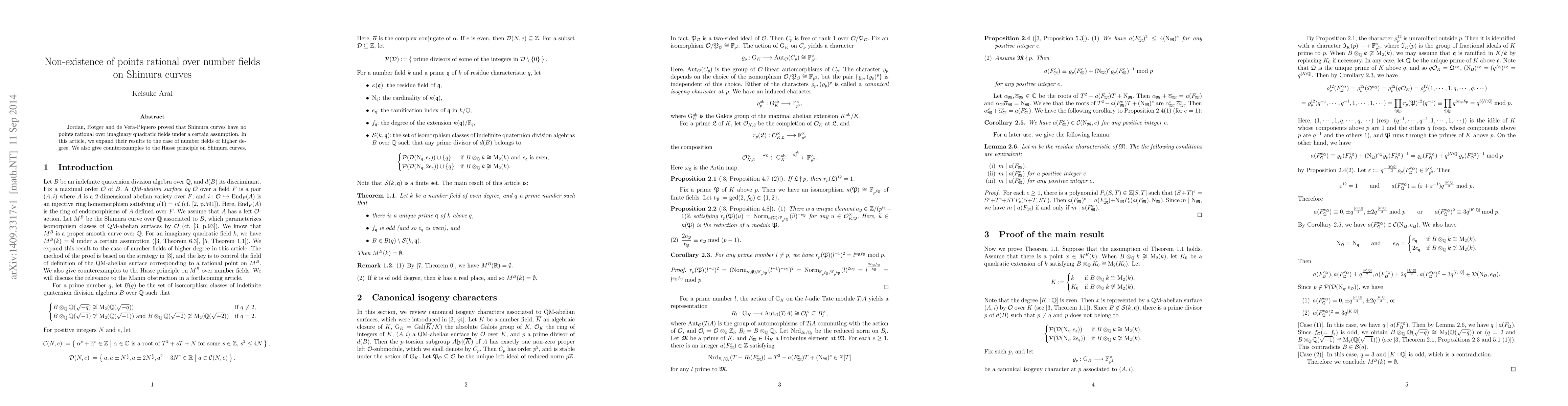 This paper extends the non-existence result of rational points over imaginary quadratic fields on Shimura curves to higher-degree number fields, and provides counterexamples to the Hasse principle in this context.