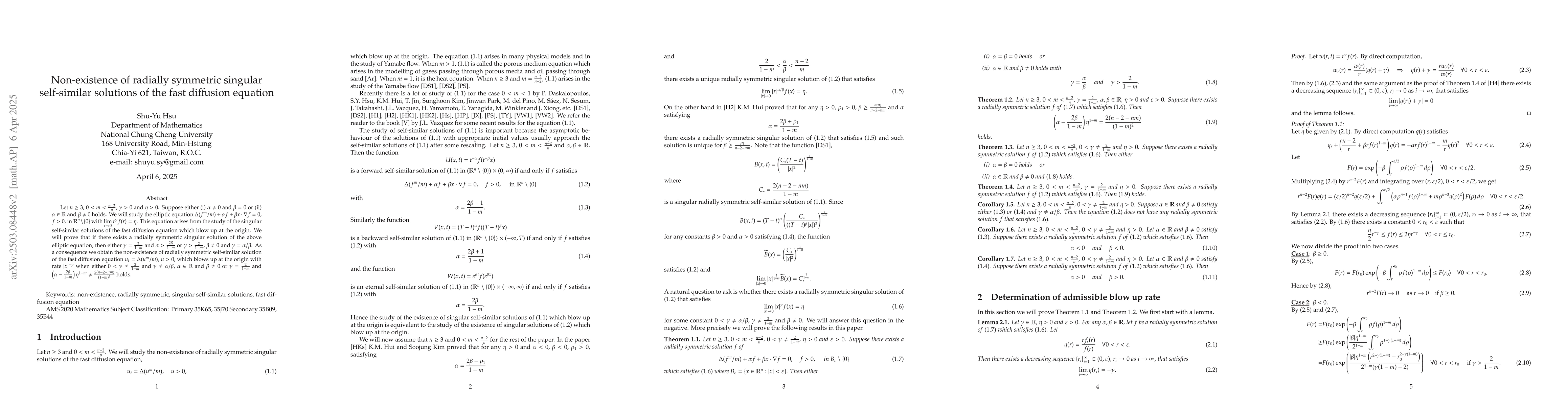 The paper presents rigorous mathematical proofs for the non-existence of certain radially symmetric singular solutions, contributing to the theoretical understanding of fast diffusion equations.
