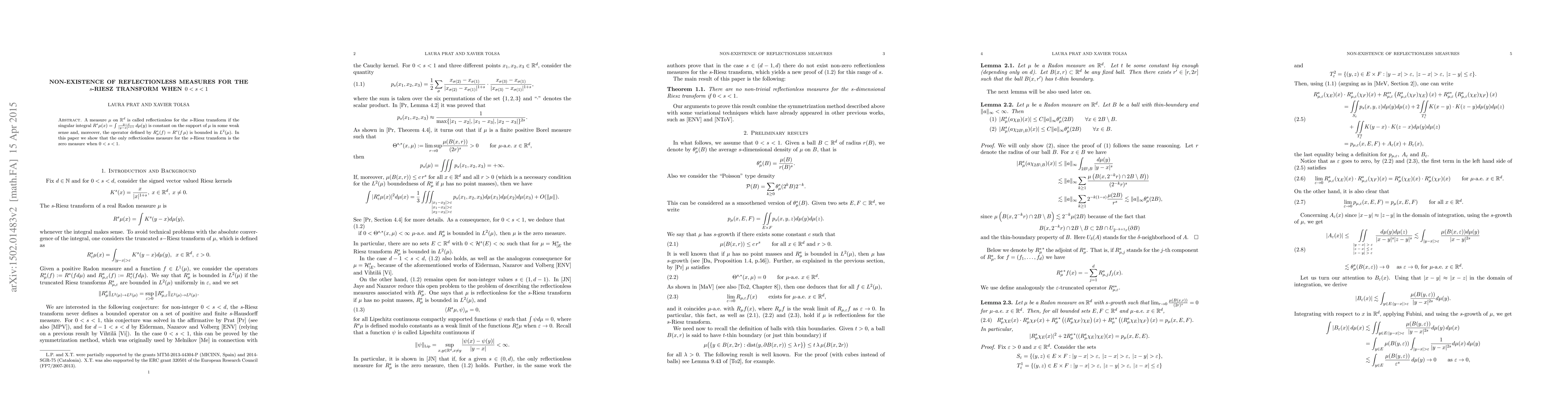 A measure $\mu$ on $\mathbb{R}^d$ is called reflectionless for the $s$-Riesz