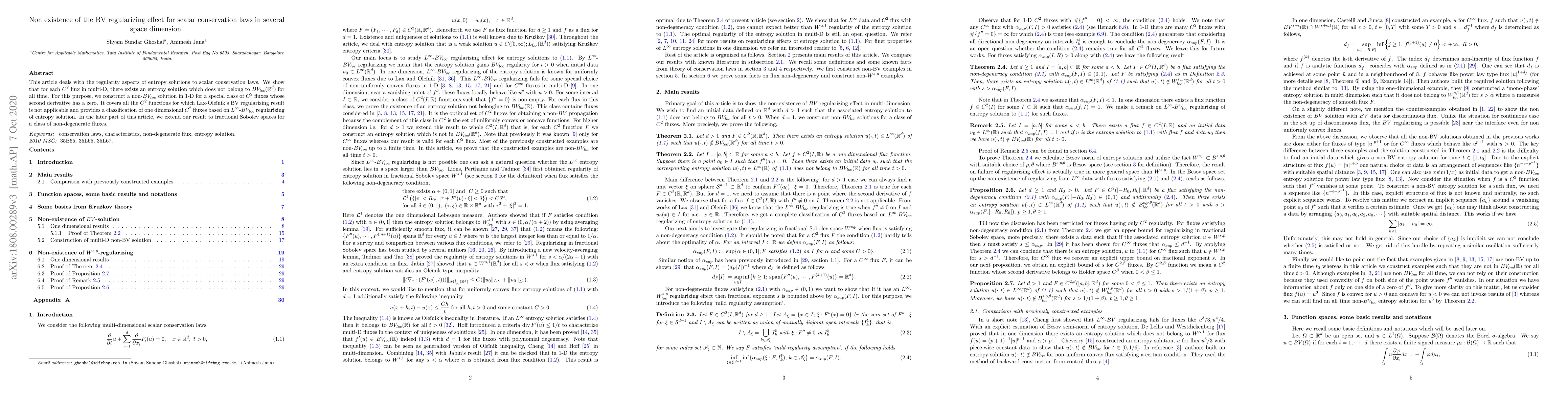 This paper demonstrates that entropy solutions to scalar conservation laws in multiple dimensions do not always exhibit the BV regularizing effect, presenting a non-BV solution for a specific class of fluxes. It classifies one-dimensional C2 fluxes based on the regularity of entropy solutions and extends the findings to fractional Sobolev spaces for non-degenerate fluxes.