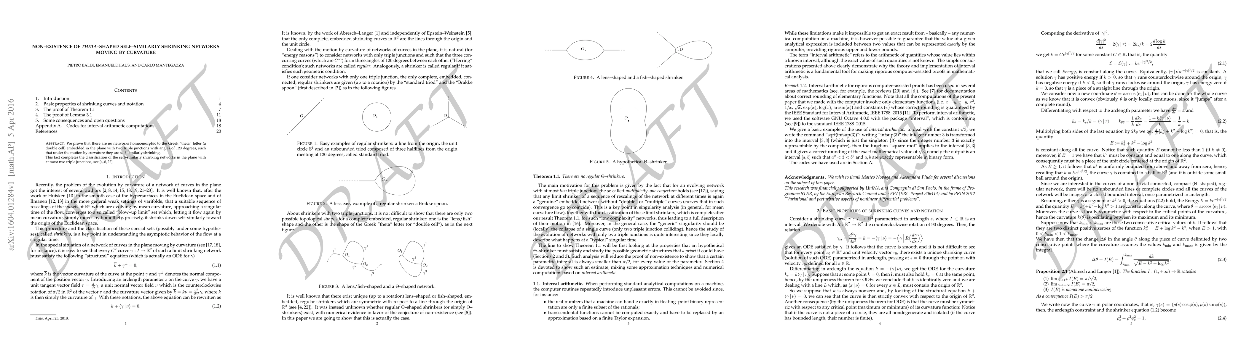 This research paper presents a proof that no network shaped like the Greek letter 'theta' with specific angle conditions can self-similarly shrink under curvature motion in a plane. This finding concludes the classification of such self-similarly shrinking networks with up to two triple junctions.