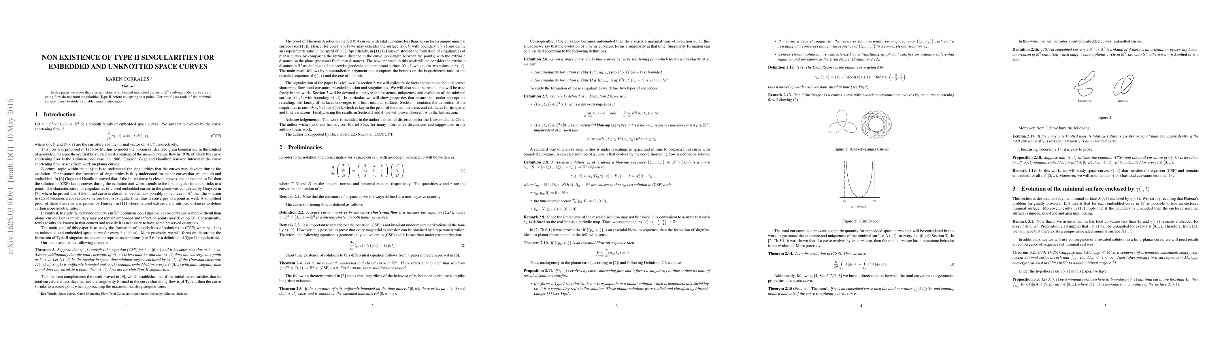 Summary: This paper demonstrates that embedded unknotted curves in $\mathbb{R}^3$ undergoing curve shortening flow avoid Type II singularities before collapsing, employing minimal surface theory and isoperimetric ratio analysis.