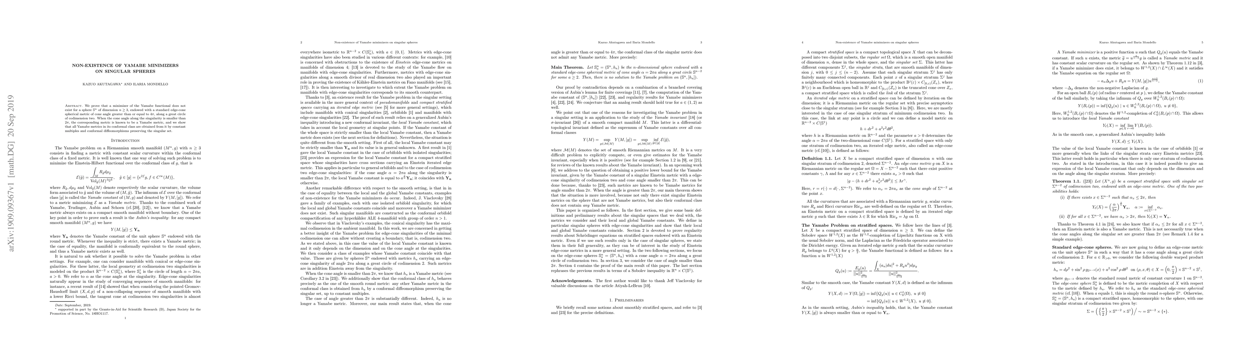 We prove that a minimizer of the Yamabe functional does not exist for a sphere $\mathbb{S}^n$ of dimension $n \geq 3$, endowed with a standard edge-cone spherical metric of cone angle greater than or equal to $4\pi$, along a great circle of codimension two. When the cone angle along the singularity is smaller than $2\pi$, the corresponding metric is known to be a Yamabe metric, and we show that all Yamabe metrics in its conformal class are obtained from it by constant multiples and conformal diffeomorphisms preserving the singular set.