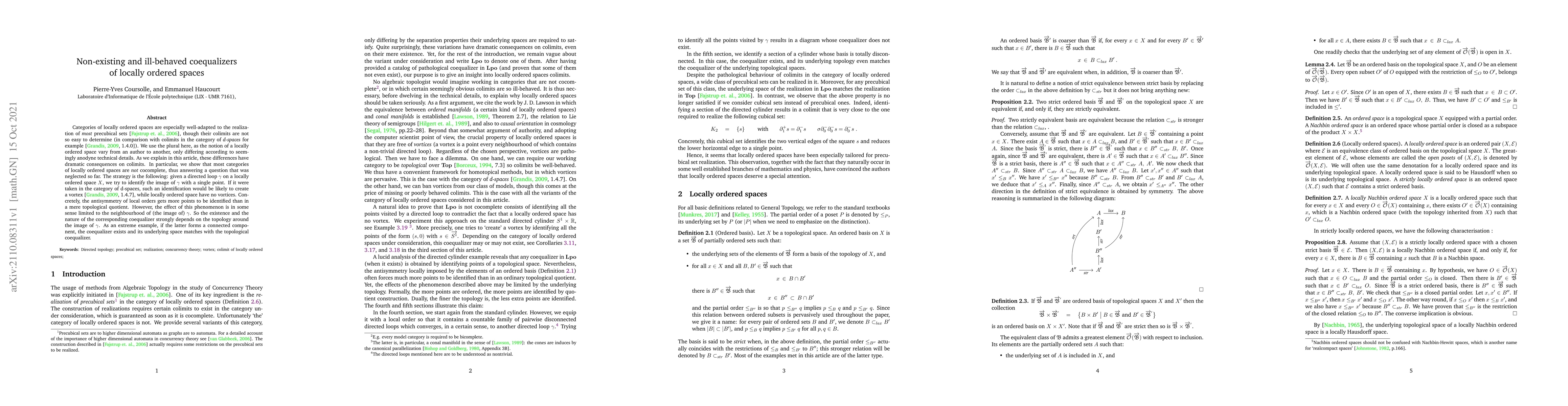 Categories of locally ordered spaces are especially well-adapted to the realization of most precubical sets, though their colimits are not so easy to determine (in comparison with colimits in the category of d-spaces for example). We use the plural here, as the notion of a locally ordered space vary from an author to another, only differing according to seemingly anodyne technical details. As we explain in this article, these differences have dramatic consequences on colimits. In particular, we show that most categories of locally ordered spaces are not cocomplete, thus answering a question that was neglected so far. The strategy is the following: given a directed loop {\gamma} on a locally ordered space X, we try to identify the image of {\gamma} with a single point. If it were taken in the category of d-spaces, such an identification would be likely to create a vortex, while locally ordered spaces have no vortices. Concretely, the antisymmetry of local orders gets more points to be identified than in a mere topological quotient. However, the effect of this phenomenon is in some sense limited to the neighbourhood of (the image of) {\gamma}. So the existence and the nature of the corresponding coequalizer strongly depends on the topology around the image of {\gamma}. As an extreme example, if the latter forms a connected component, the coequalizer exists and its underlying space matches with the topological coequalizer.