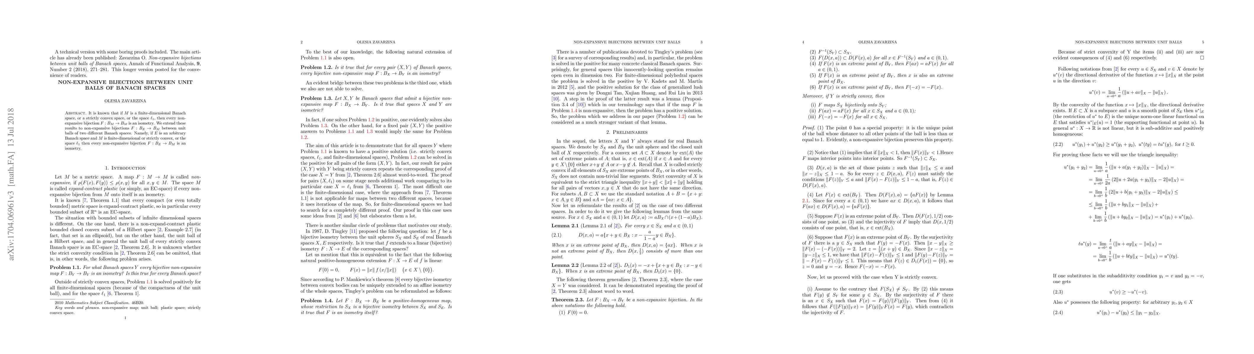 This paper extends the result that non-expansive bijections between unit balls of finite-dimensional, strictly convex, or $\ell_1$ Banach spaces are isometries to cases where $F: B_E \to B_M$ maps unit balls of two different Banach spaces, with $M$ being one of the aforementioned spaces.
