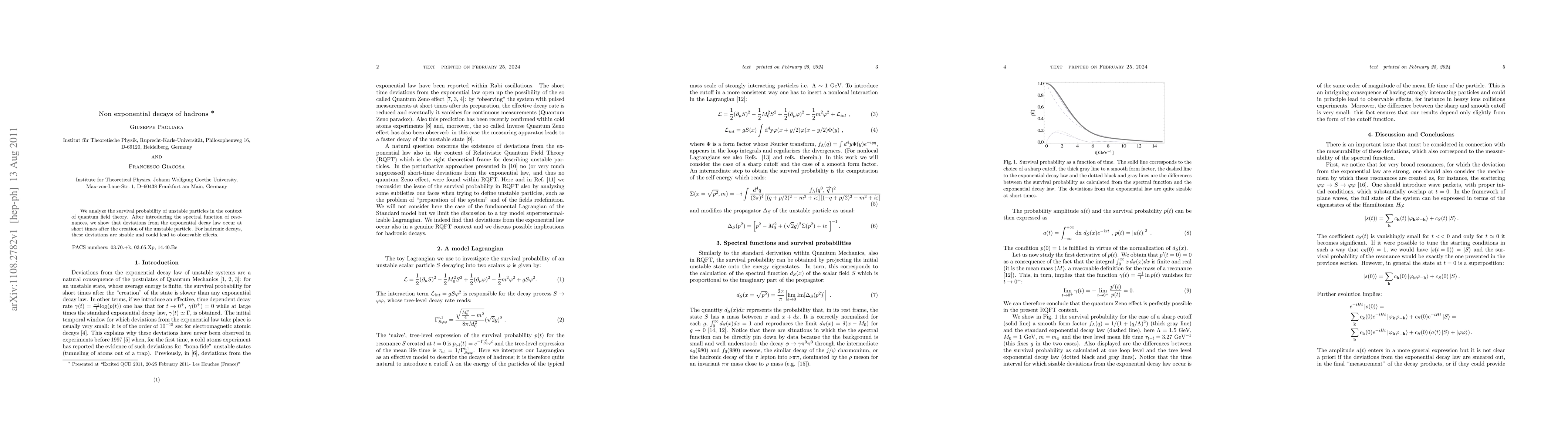 Researchers analyze hadron decays using quantum field theory and find deviations from exponential decay at short times, suggesting observable effects.