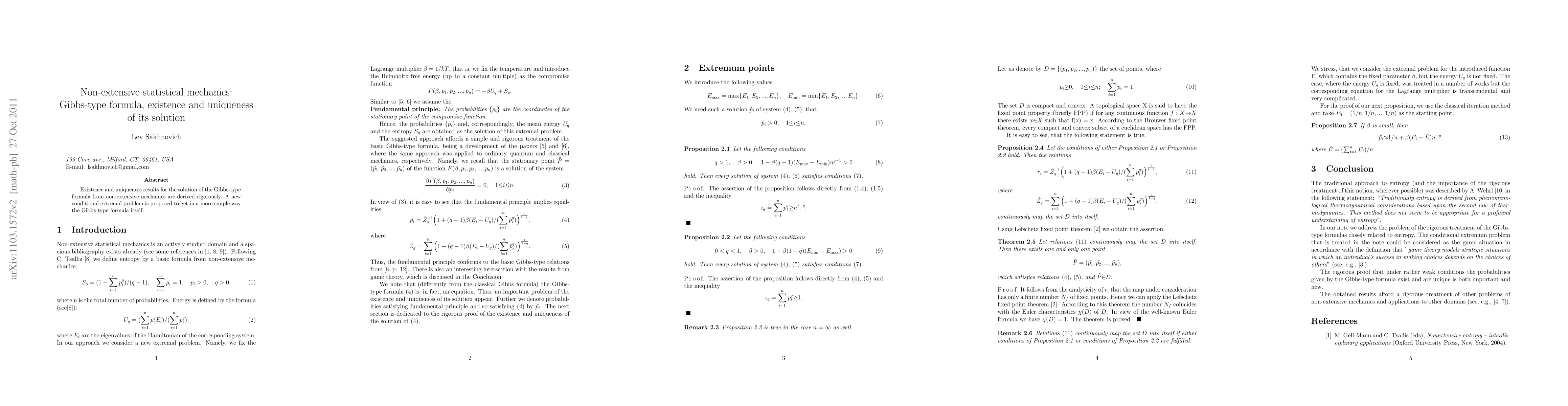 Existence and uniqueness results for the solution of the Gibbs-type formula from non-extensive mechanics are derived rigorously. A new conditional extremal problem is proposed to get in a more simple way the Gibbs-type formula itself.