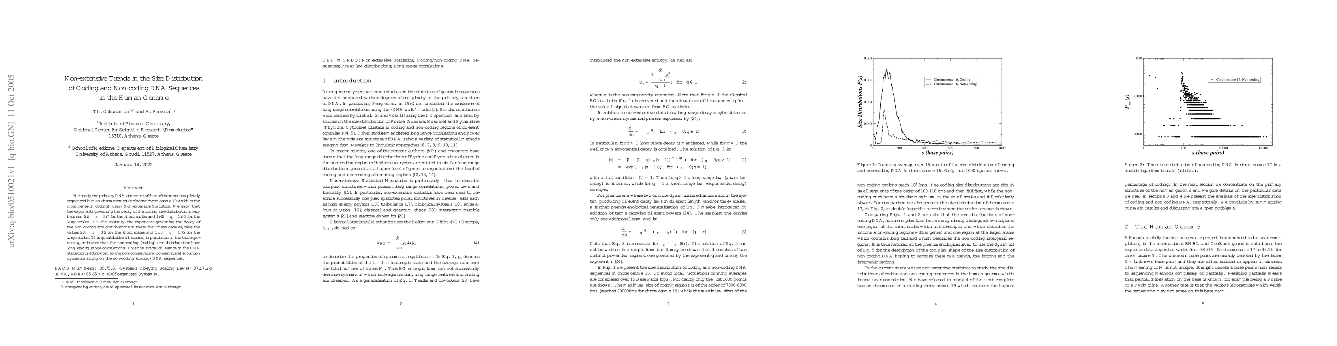 Researchers studied DNA sequences in human chromosomes using Non-extensive Statistics, finding different decay exponents for coding and non-coding sequences that suggest long-range correlations.