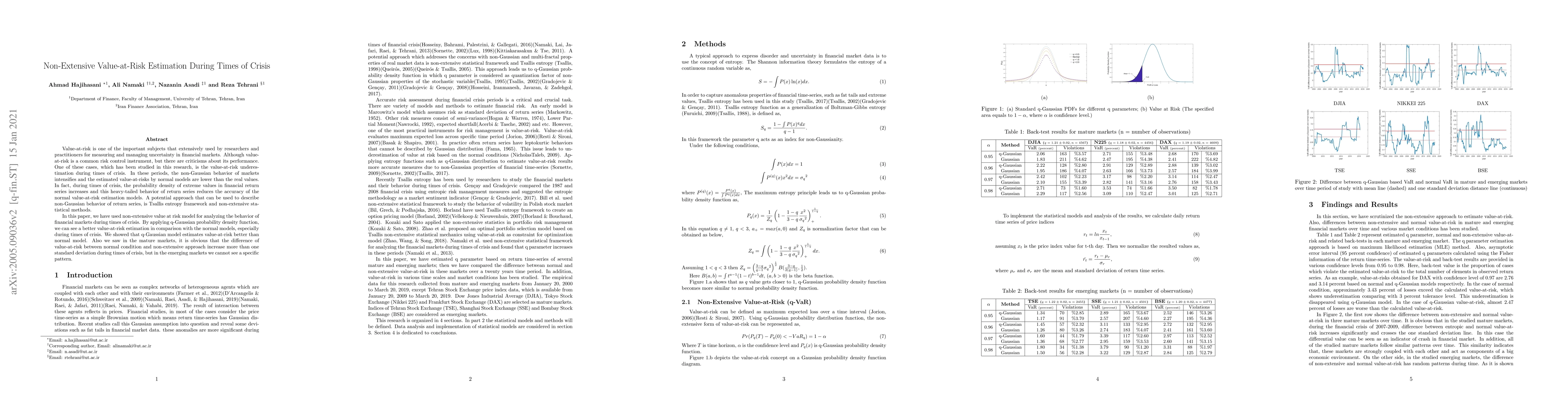 This research paper proposes a non-extensive value-at-risk estimation model to better measure uncertainty in financial markets during times of crisis, improving accuracy over traditional normal models.