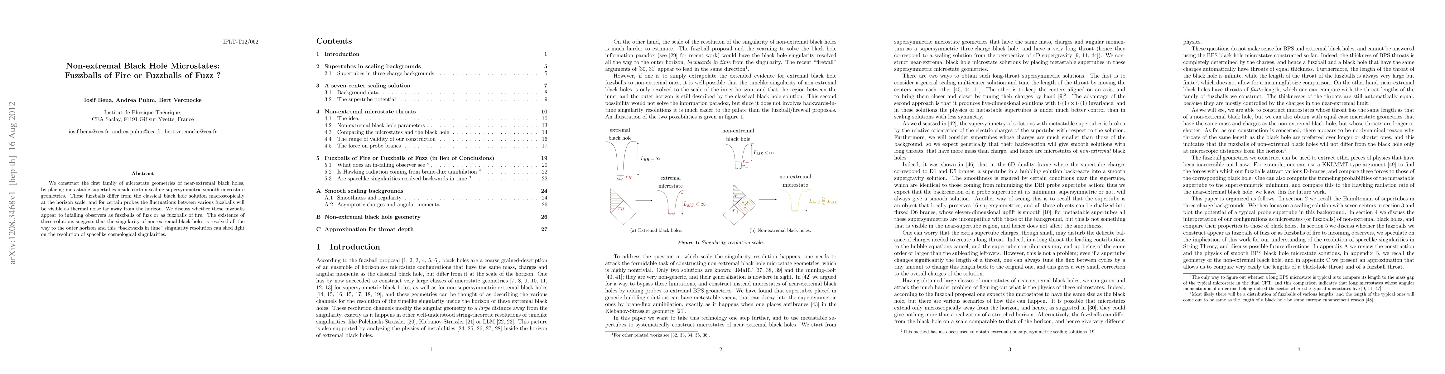 This paper introduces microstate geometries for near-extremal black holes, proposing metastable supertubes within supersymmetric smooth geometries termed "fuzzballs." It explores whether these fuzzballs appear to infalling observers as composed of fuzz or fire, suggesting that resolving non-extremal black hole singularities may provide insights into cosmological singularity resolution.