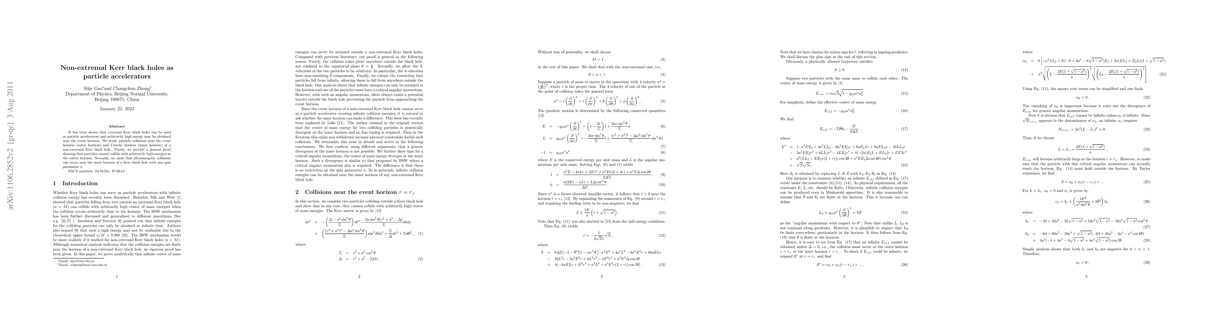 This paper investigates particle collisions near the horizons of non-extremal Kerr black holes, proving that arbitrarily high energies cannot be achieved near the outer horizon, while ultraenergetic collisions are possible near the inner horizon regardless of the black hole's spin parameter.