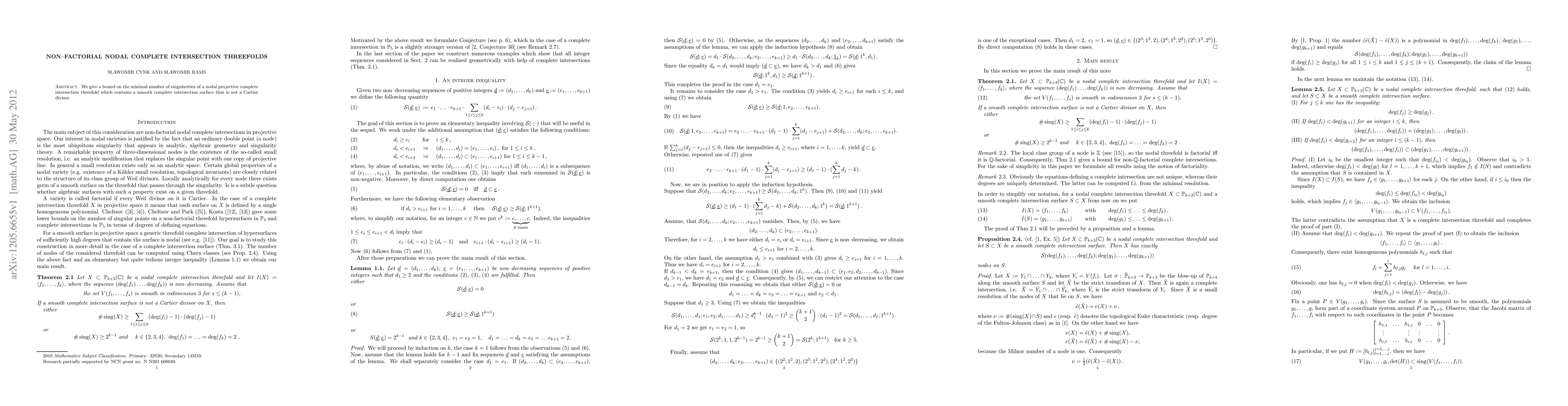 Summary: This paper establishes an upper limit on the fewest possible singularities in a nodal projective complete intersection threefold that includes a smooth, non-Cartier divisor complete intersection surface. The focus is on the geometric properties and intersection characteristics of such threefolds.