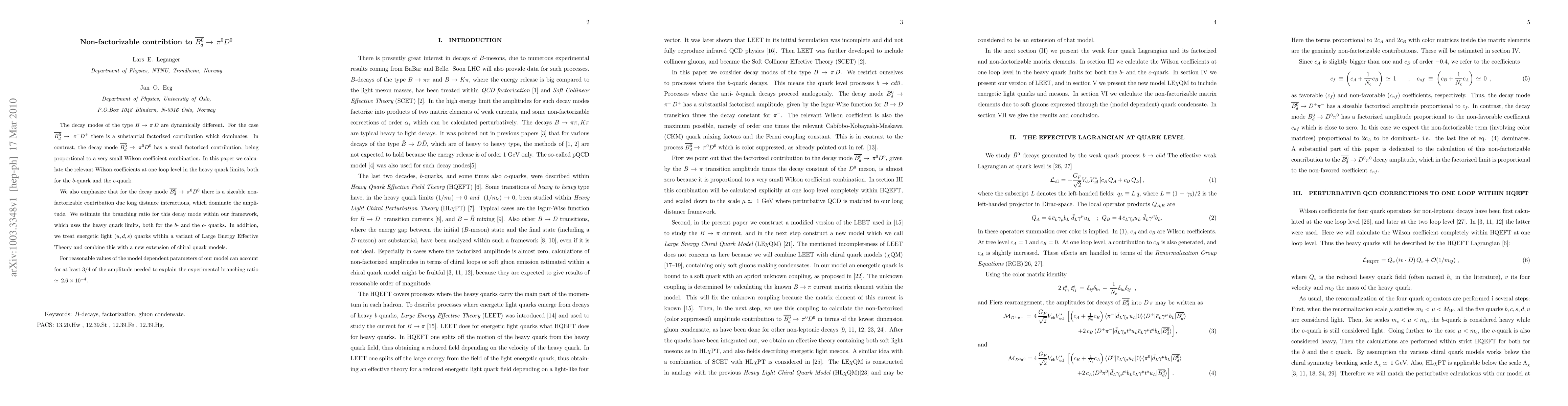 This paper calculates the non-factorizable contributions to the decay $\bar{B_{d}^0} \to \pi^0 D^{0}$, emphasizing its dominance over factorized contributions due to long-distance interactions. The authors estimate the branching ratio using heavy quark limits and a combination of Large Energy Effective Theory and chiral quark models.